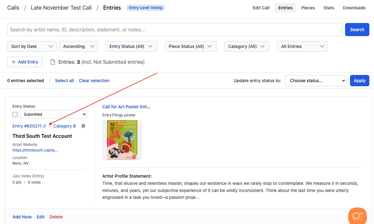 - Click on the Entry ID: