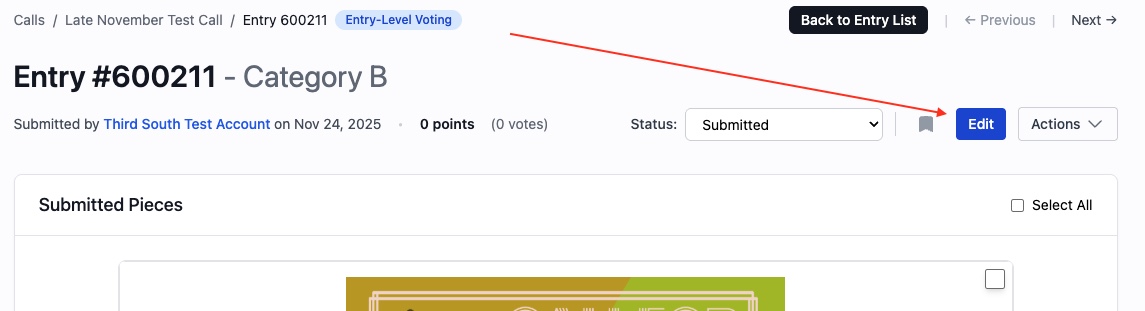 - Then, from the Entry detail page, click on Edit: