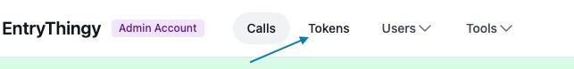 To purchase tokens, login to your EntryThingy as administrator and click on Tokens at the top: