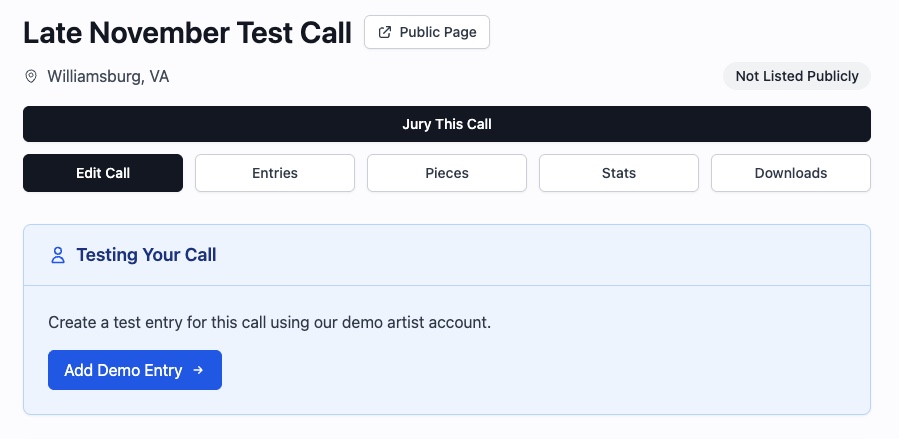 We seeded this demo account with some demo data, but outside of that, they're exactly like any other artist that would come to EntryThingy and apply for your call.